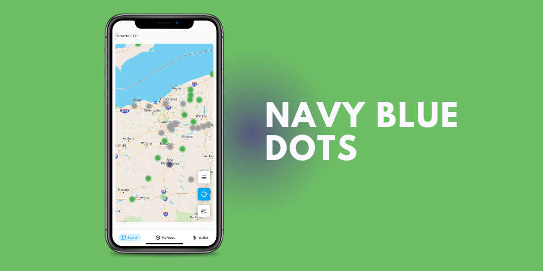 Navy blue dots represent Vues that require Vuers to have completed a background check. Vuers can initiate the background check process directly within the iVueit app, enabling them to access a broader range of opportunities.